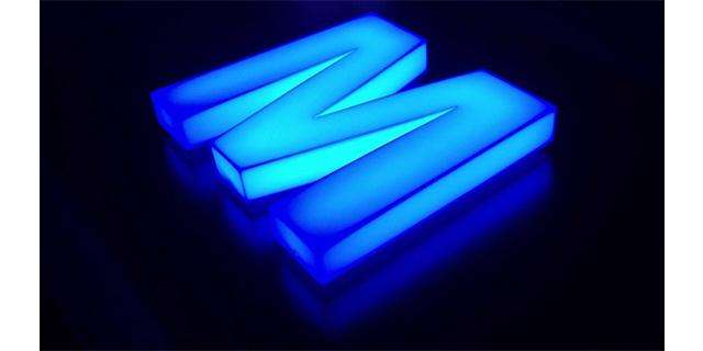 亚克力发光字采用LED灯带或者模组,省电、轻巧等特点,电压使用12v安全电压,整体字1平方耗电量60瓦左右。
