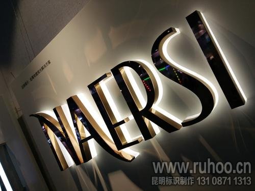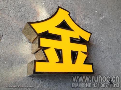 户外亚克力用广告雕刻机切割整体造型,根据所需要厚度用201不锈钢焊接侧面边条,边条常用有金色镜面、金色拉丝、银色镜面、银色拉丝、玫瑰金、黑钛金等颜色。面板卡入字壳再粘合,底壳预粘入灯带,一般采用防水LED灯带,底壳子再和侧面组装,不锈钢亚克力发光字则制作完成。